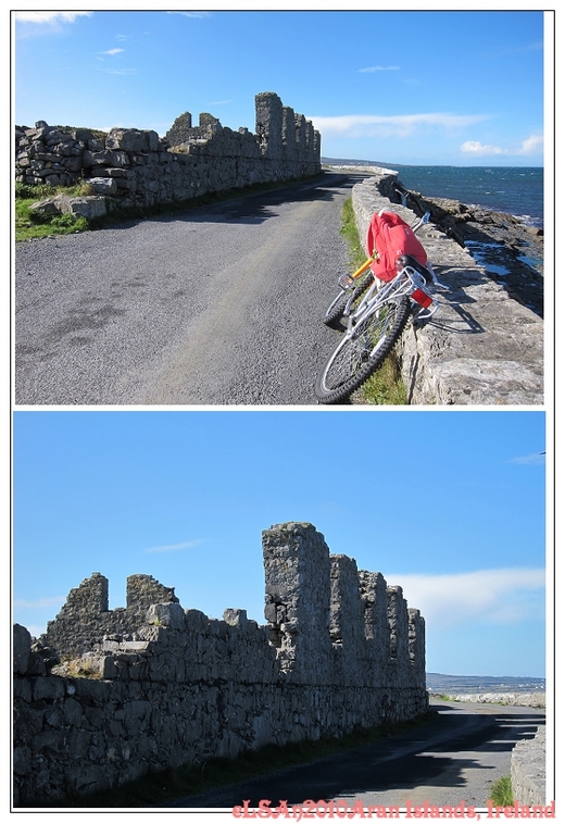 第一個遇到的是個日本歐吉桑,他更厲害,用健行的方式,徒步。還跟我保證很快就會到Dún Aonghasa。因為我是騎車,他是用走的。結果,並沒有。好不容易又遇到一對奧地利來的夫妻,他們和我一樣騎單車,卻跟我一樣迷惘,而且騎著騎著,他們又消失了。
