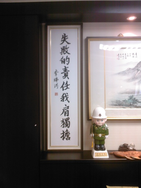 我有時覺得自己是個幸運兒,因為有機會見識、見證、甚至參與許多一般人不容易有機會碰觸的人事物。很多大老闆的辦公室都隱藏很多故事,光是對聯的故事就有許多,我覺得李瑞河的這個對聯很有意義。希望這個照片可以跟大家分享,提醒自己跟網友們,你怎麼處理失敗這件事?就怎麼影響你自己的人生。