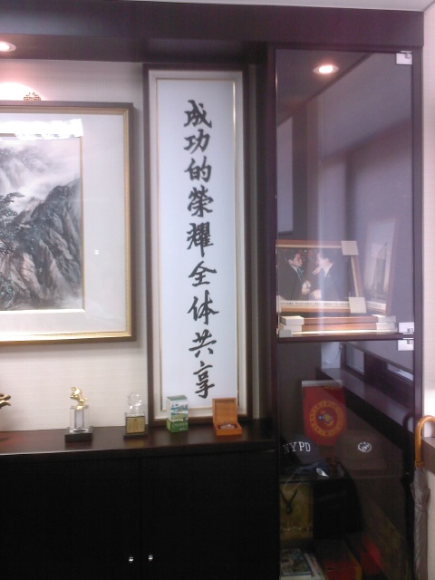 這是天仁集團總裁李瑞河辦公桌的後方的對聯: