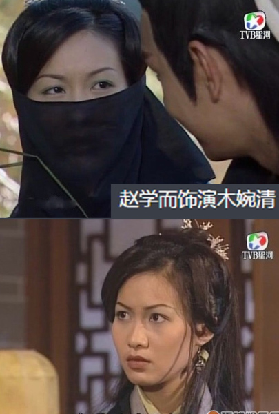 以前的造型雖未必最美但至少沒新版怪異到讓人痛批吧???扮木婉清的不論恬妮還是楊盼盼,都跟趙學而版一樣,用黑色布巾遮住半張臉!