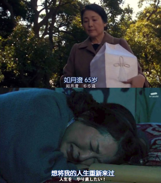 只不過日劇也是漫畫改編但不是我看的版本,女主角因獨生女家裏開花店,威權的父親要她放棄唸好不容易考上的大學,專心照顧祖母與店裏生意(怪叻,為啥小孩不多生幾個???),結果45年過去,唯一的親人~~母親過世,想到人生她不禁悲從中來。
