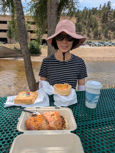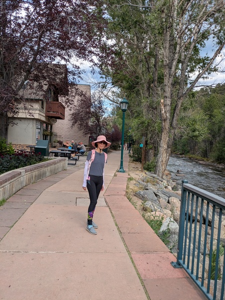 科州山城艾斯提,散步溪畔風習習。 樹下賞心歇歇腳,傾聽老翁話今昔。