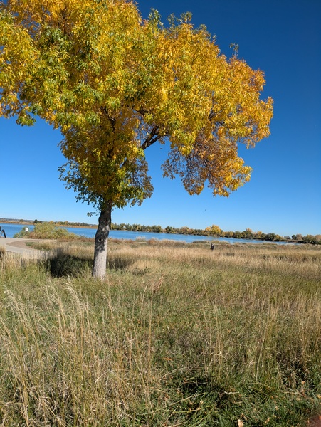 浮生半日爬桌山,山頂平坦無人煙。遥望丹佛凡塵裏,秋日萬樹是人間。