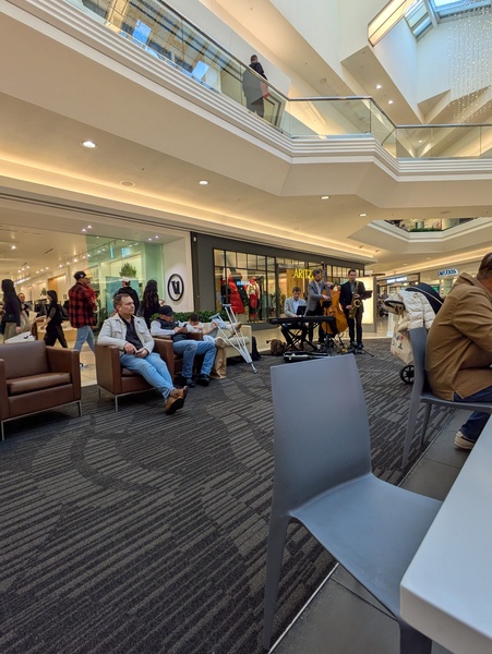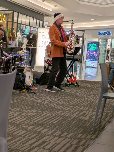 Live holiday music at the mall today. 摩耳瞎拼聽音樂,初冬喜迎聖誕節。喝杯咖啡歇歇腳,添購新衣與新鞋。