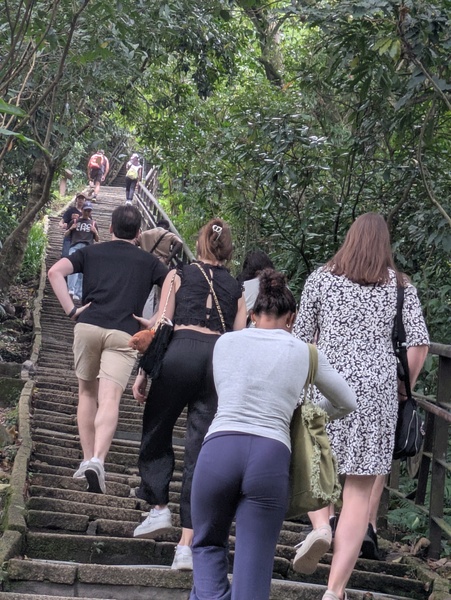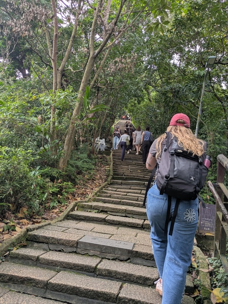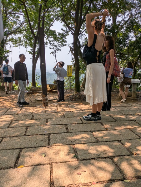 吾羈旅美多年,近日返台爬山,頗愛象山。象山在台北101旁,外國人不絕於途,甚是國際化。因吾居美,常獨自爬山,已甚孤,就不可能再爬入無人之境。漸學醉翁之觀察遊人,"負者歌於途,行者休於樹,前者呼,後者應...."。吾愛休於樹,觀遊人,愛觀人甚於觀景。爬山而觀人,一樂也。