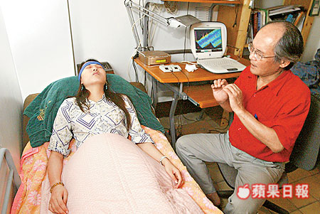 iatni:「那只好讓你醒過來了,我數到五,你就會清醒:一、你全身被白光包圍。二、你充滿能量。三、你不會疲倦。四、你的頭腦非常靈活。五、你已經完全清醒。」催眠後暗示:「你看到我摸耳朵,就會忘記催眠內容。」