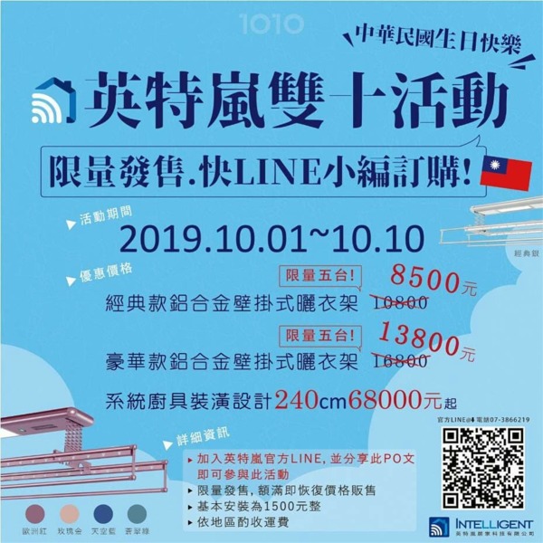 英特嵐小編祝台灣Taiwan 生日快樂~ 除了連假4天令人開心之外,我們又要來特賣囉!!! 這次只各限定5台優惠價,要買要快~不趕快下訂就來不及了!!!只要分享本PO文並加入我們的官方LINE帳號,即...