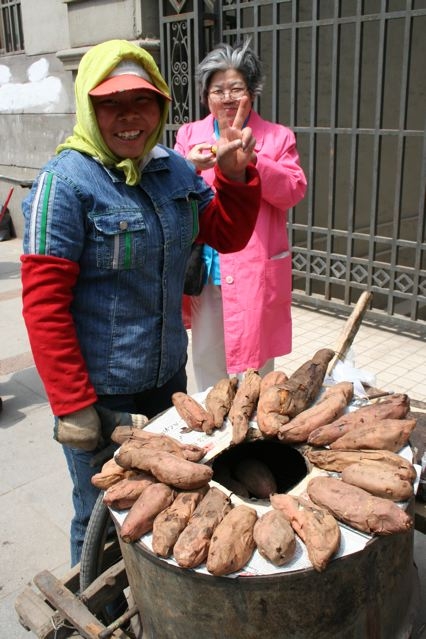 Our last stop in China was Dalian, a northern port in the Dongbei region. It's my mom's ancestral home. We were walking along the street when she stopped and said, "I want one of those." There was a woman selling freshly baked sweet potatoes out of this portable coal-fired oven. We bought a sweet potato and ate it out of a plastic bag. –Hsiao-ching Chou