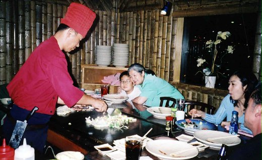 孩子小的時候﹐他們喜歡去「紅花」(Banihana)吃表演式的日本鐵板燒。