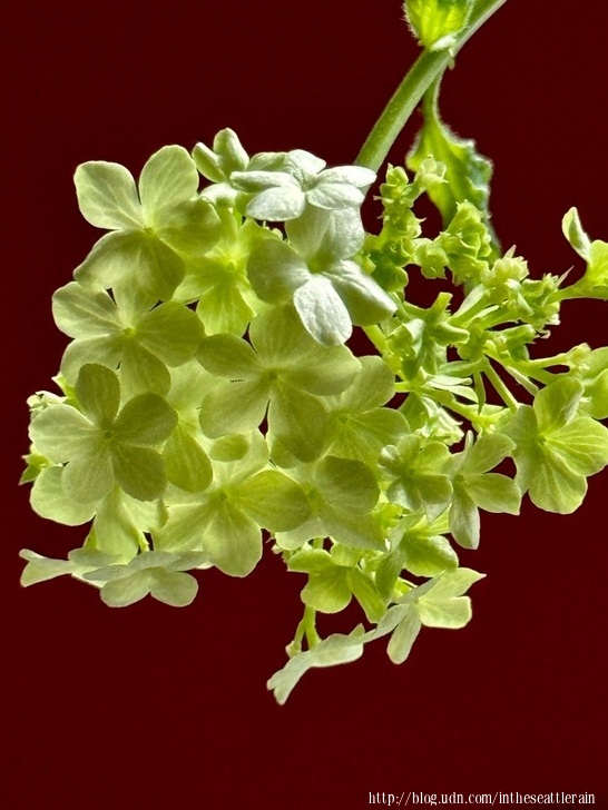 沒幾日,葉片展開,竟然是『櫻花』和『日本繡球花』