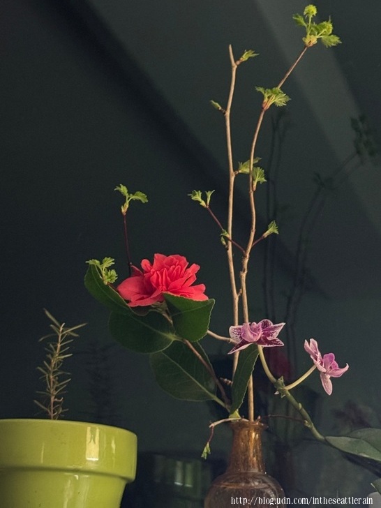 隨意挑了兩、三枝,回家蘸了些生根粉,養著