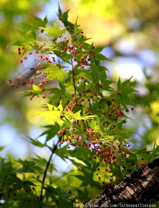 第一次在您這兒看到楓樹開花, 光影之美拍的真好!