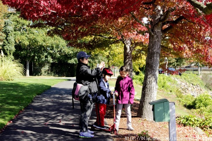 今年我們帶小朋友到附近的海邊步道走走﹐卻意外採到一季楓紅!