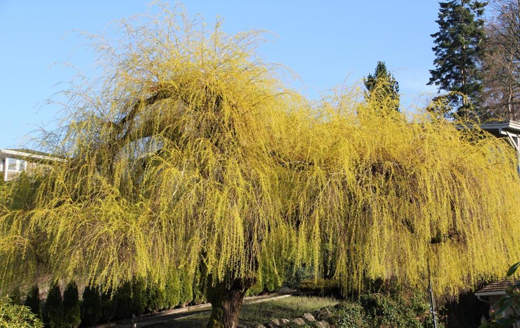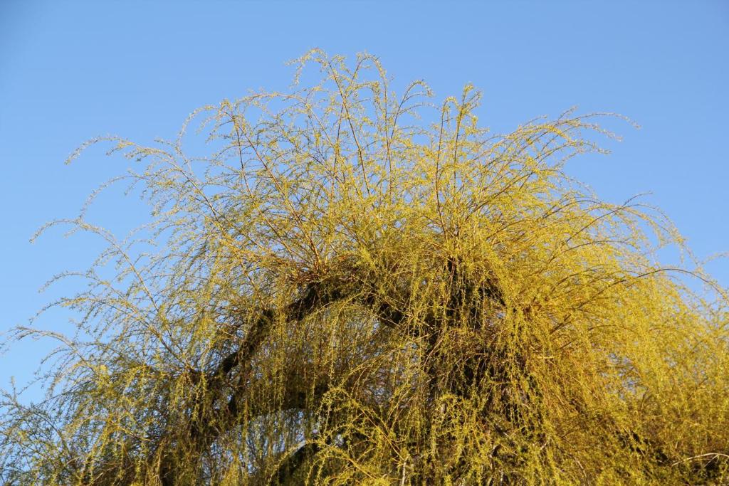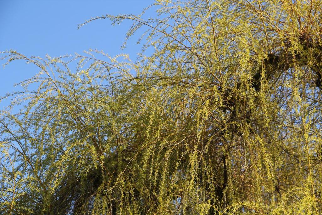 去年秋天被剪了個大禿頭, 柳條兒都是今春才抽出的呢