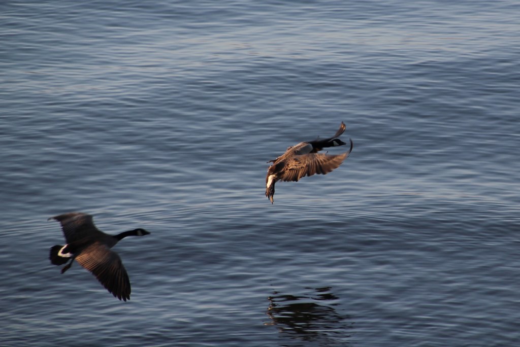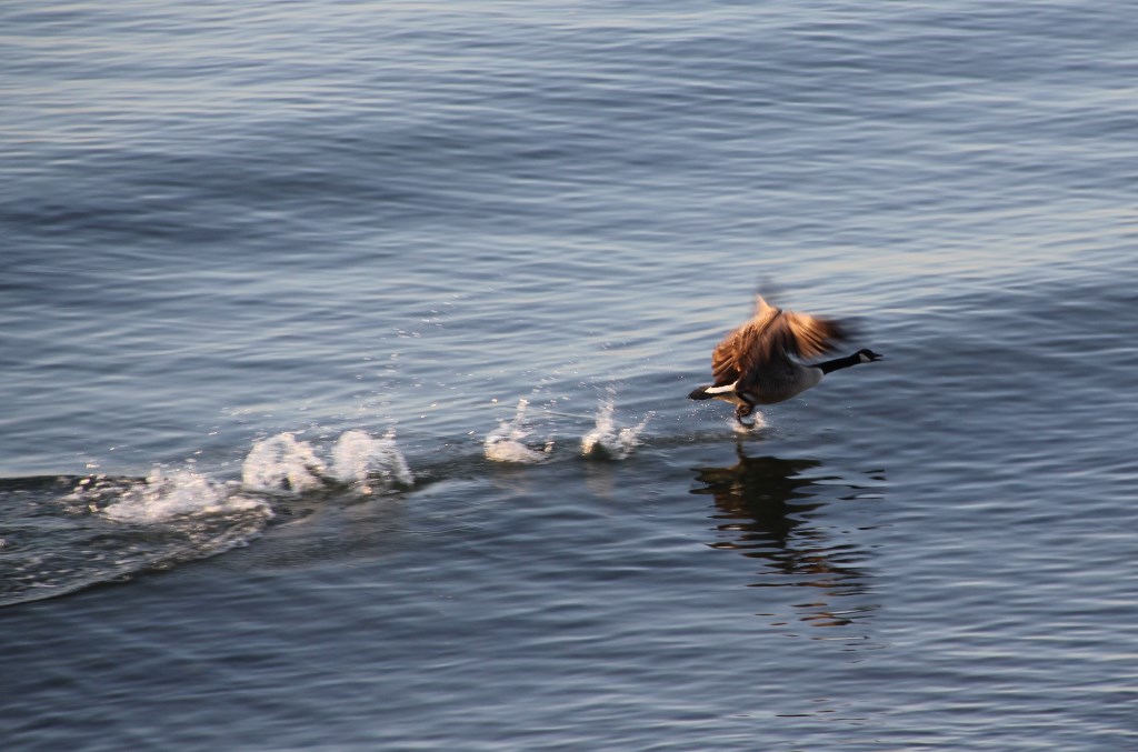 草地上鴨公鴨婆踱著恩愛的步子﹐小松鼠撿起公園裡遺落的爆玉米花高興地啃著。海邊偶而有皮舟划過﹐大雁聲聲呼叫﹐說時遲‥那時快…