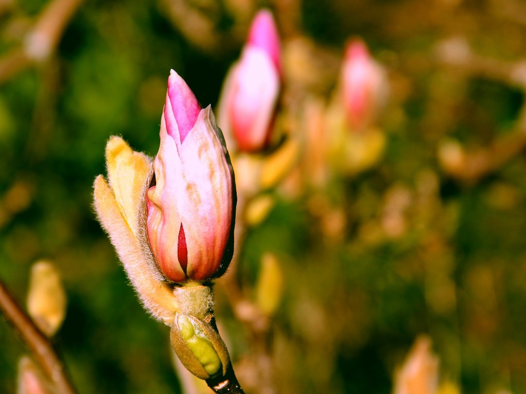 仲春三月﹐園子裡熱鬧起來﹐櫻花開盛了﹐落英為辛夷花鋪路﹐白的﹑粉的﹑淺紫的﹑紛紛佔據了天空﹐洋水仙﹑鬱金香﹑風信子﹑山茶花﹐還有說不出名字的小花﹐冒著料峭的寒﹐勇敢展顏。