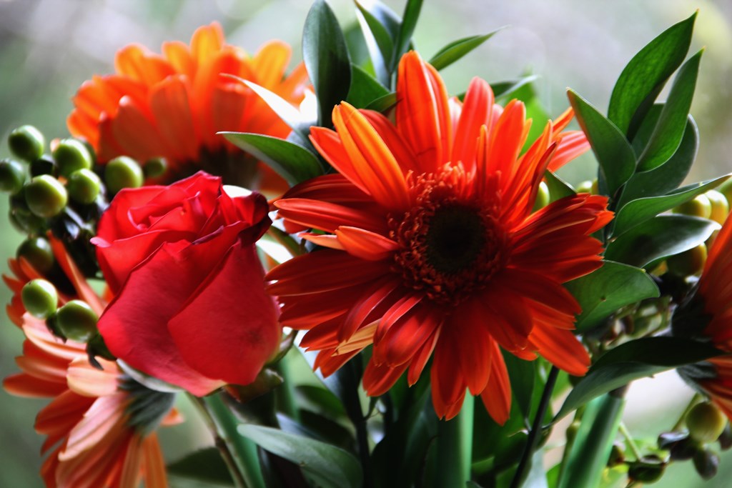 這幸福﹐是雙向的。不單是女孩子會送花﹐男孩子也會。小兒子抽空來看我﹑陪我聊聊天﹐約好了要帶我去買衣服。這是他帶來的花束。