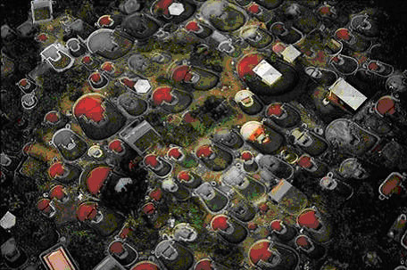 從空中看就像一隻隻的拖鞋被隨意地棄置在大地上,沒有固定的地方、有的在墓園、有的在宅院後面、有的在田裏、也有的在海岸邊的灘頭後或者被瓊麻林整個包圍……