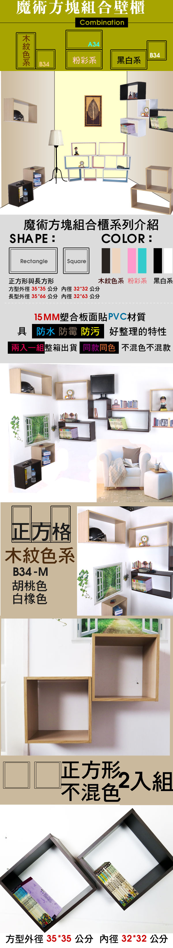 超實用僅此一檔>LOGIS-多彩魔術口格子壁櫃 壁架 展示櫃-正方形兩入組B34 的產品介紹在下面,