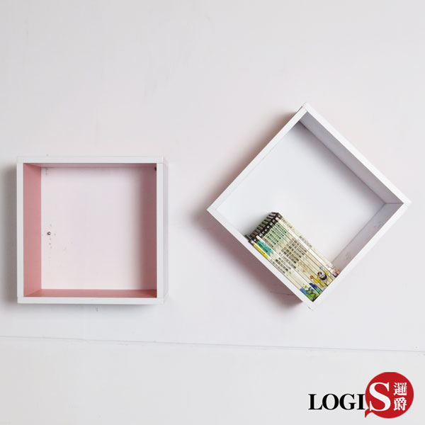 【本日刷卡購買商品折扣】LOGIS-多彩魔術口格子壁櫃 壁架 展示櫃-正方形兩入組B34 超實用僅此一檔