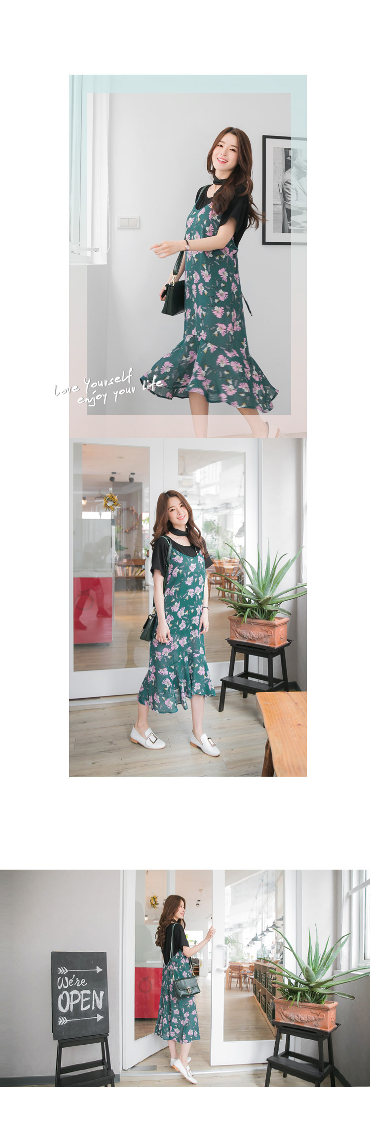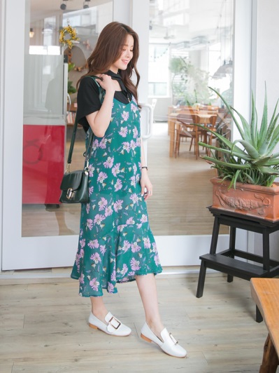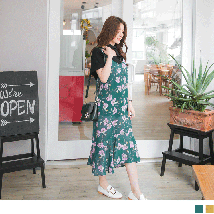 俏麗美型~細肩帶荷葉領口造型腰鬆緊連身褲.2色 售價:369