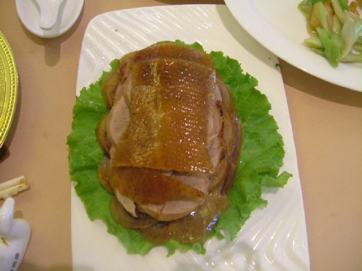 今年二月來北京吃的那一次,連哥哥都直呼好吃,馬上就把北京烤鴨排到好吃第一名了,原來的一二名紅燒下巴和鐵板燒大蒜菲力,只好屈居二三名了。回到台北後,不免在親友面前大談北京烤鴨如何如何,聽得我家爺爺特地訂了台北最好吃的一家北京烤鴨,請了一桌子愛吃鬼大快朵頤一番,順便〈其實是專程啦〉讓我比較比較。