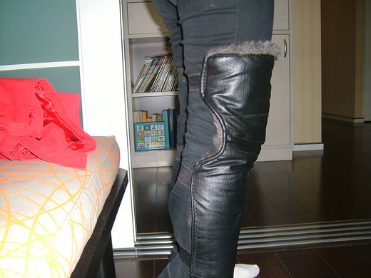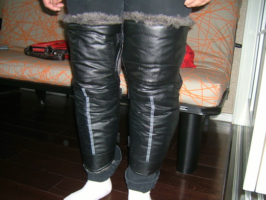 下午,(打掃)阿姨在我家,秀給我們一樣冬天騎車專用的法寶---毛皮護膝,見下圖。