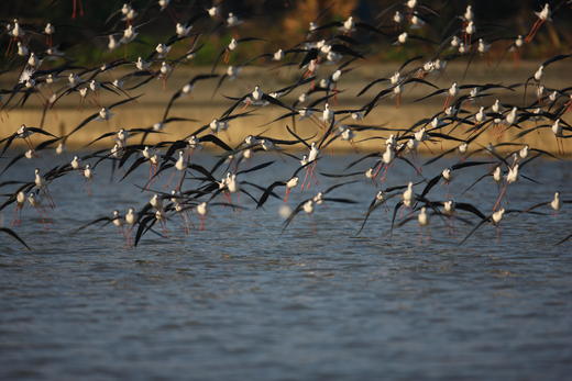 風起 田園上成千成百的候鳥 迎風盤旋在濕地的上空
