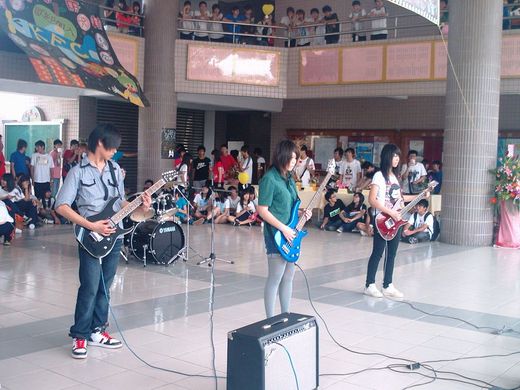 兒子說,可能因為熱音社不是學校的主流社團吧?他總覺得校方給他們的待遇比起其他社團矮一截。我說,你怎麼會這樣覺得?他說,光每次要借場地練習,校方就是很難讓他們滿意,有次練到一半,主任就叫人來把爵士鼓搬走說樂隊要用,很討厭!想不透,樂隊有自己的鼓幹嘛用爵士鼓?我安慰他:「真是辛苦了!」