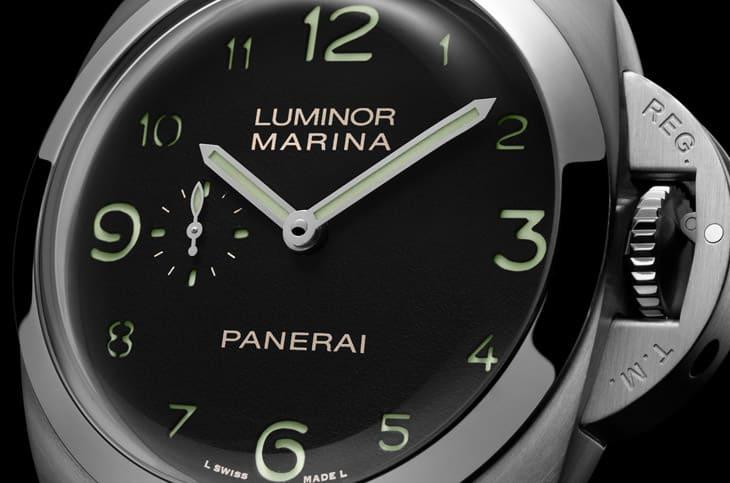 面盤延續沛納海招牌的三明治結構,以霧黑作為視覺主體,阿拉伯數字與時標極具辨識度,底層的綠色Super-LumiNova塗層在白天呈現出淡淡的復古氛圍,夜間則散發強烈光度,既向軍錶傳統致敬,也維持Luminor系列向來引以為傲的可讀性。