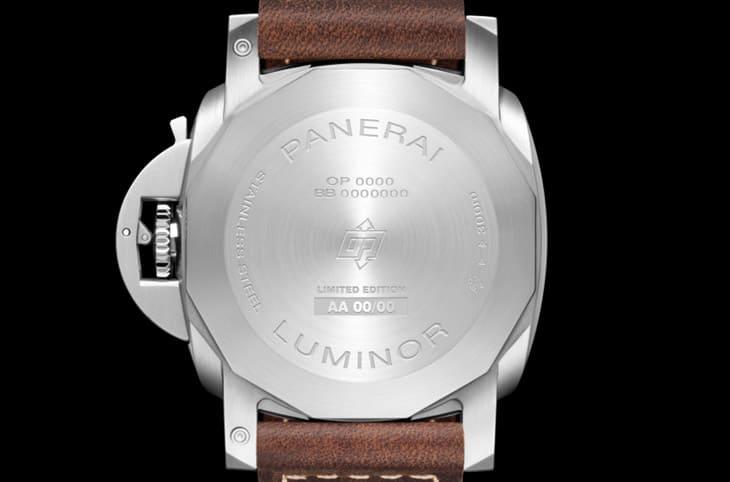弧形結構讓光線更自然流入面盤,從側面看更能感受到那種柔和弧度帶來的工具錶美感,防水性能達300米,並依照品牌標準比標示深度多測試25%,這種「實力先講話」的作風,也正是許多老玩家欣賞沛納海的原因,錶背則採用不鏽鋼實底蓋,刻上限量標記與獨立編號,讓這款限量1000只的新作更具收藏意味,錶耳同時搭配快拆按鈕式彈簧桿,讓換帶更直覺。PAM01759隨附兩條錶帶,其中深棕色的小牛皮展現復古與質感,而黑色橡膠則適合更活躍的環境或水上活動,兩種性格鮮明的錶帶,加上快拆結構,讓佩戴者能依照日常需求迅速切換造型。