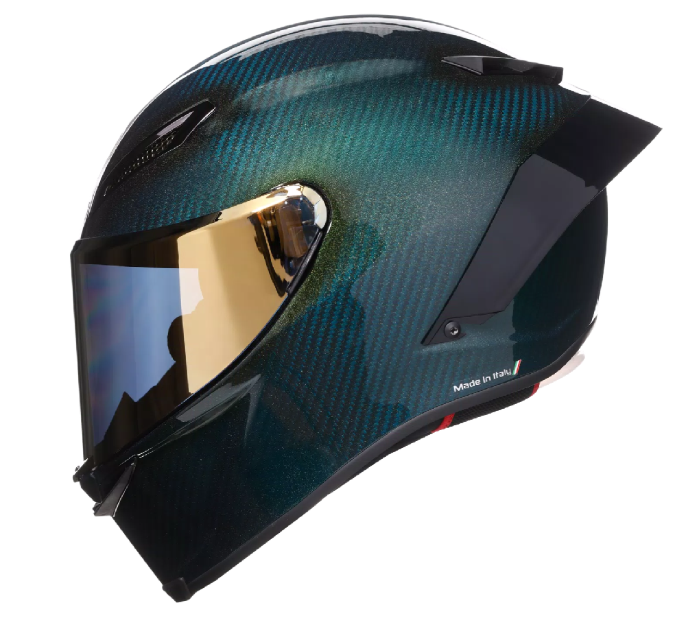 Pista GP RR採用了高規格的防護設計,除了擁有FIM賽事認證之外整個帽體也都採用了碳纖維的材質,在MotoGP賽事中備受車手們喜愛。這次新推出的限定款塗裝,是一個海洋綠搭配金屬金的新色,讓整個帽體在低調中又帶有一絲尊貴感。