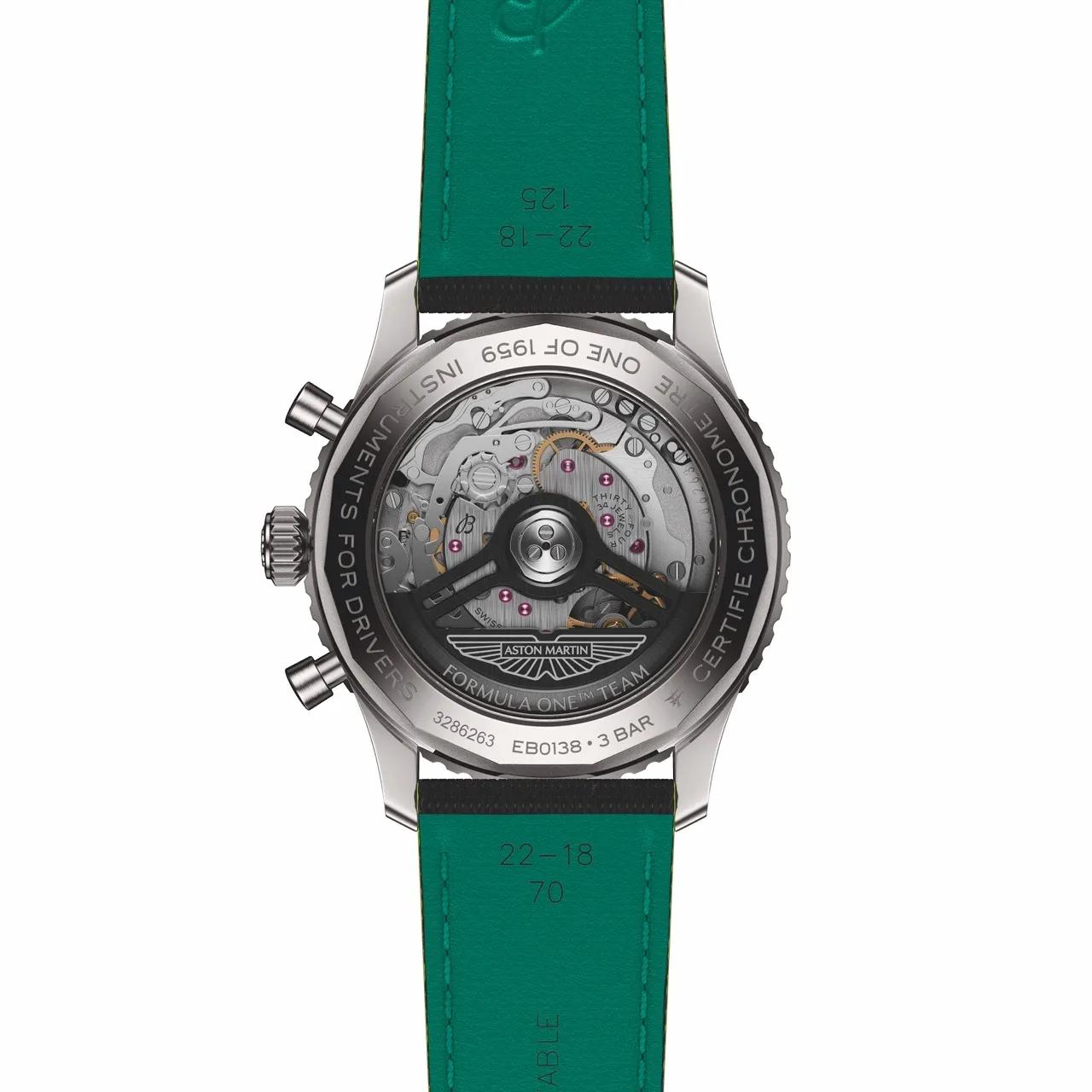 百年靈用 Navitimer 出招,其實很取巧, Navitimer本來是飛行員的工具錶代表,現在卻被丟到 F1,等於在說:「天上飛的地上跑的,都是我的主場。」錶款規格上,Navitimer B01 Chronograph 43 Aston Martin Aramco Formula One™ Team 特別版。用的是鈦金屬錶殼、碳纖維錶盤與 Aston Martin 經典綠,並搭載百年靈自製 B01 計時機芯,B01 具備約 70 小時動力儲存,而這顆機芯本身也以 COSC 天文台認證為賣點之一。這只錶限量 1,959 枚,對應著 Aston Martin 1959 年首次進入 F1 的年份,但好玩的是,Georges Kern 在接受 《GQ Hong Kong》專訪時卻笑著說出:「限量 1,959 枚,但如果一週賣光,我們不介意再做一批。」