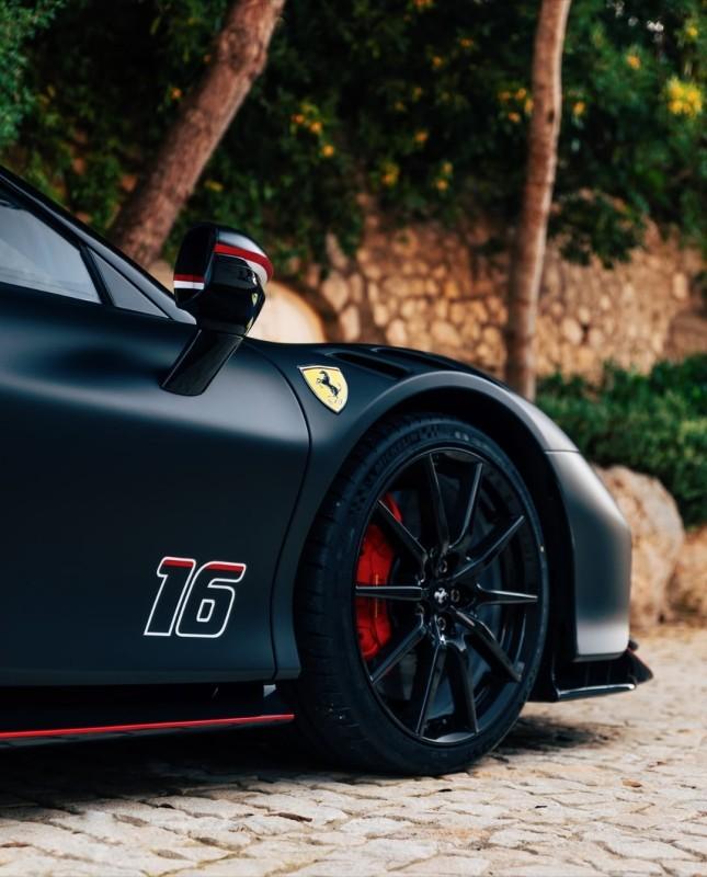 最引人入勝的細節在於「摩納哥色彩」的注入。為了向家鄉致敬,Leclerc 在後視鏡蓋、大型固定式尾翼的端板處,點綴了象徵摩納哥國旗的紅白配色。此外,車身側邊與細節處更融入了他在賽場上的專屬標誌——「16」號賽車號碼,配合國王白(Bianco King)線條勾勒,讓這台超級跑車彷彿是將 F1 車隊精神直接「穿」在身上的道路版賽車。