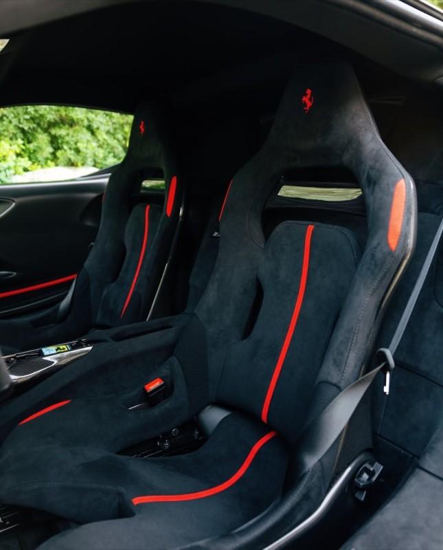 這款結合了極限科技與個人化美學的超跑,全球僅限量生產 799 輛。Leclerc 的這台車不僅搭載了碳纖維輕量化輪圈,內裝也選用了黑色高質感面料搭配紅色縫線,與外觀呼應。