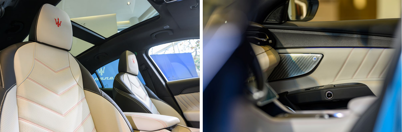 外觀採用專屬消光色 Grigio Lamiera ,隨光線呈現霧銀與冷灰的細膩層次;內裝則選用冰黑雙色皮革與紅色縫線,並配備 21 支揚聲器的 Sonus faber 音響系統。而 Modena 個性訂製版則提供包含「皇家綠」在內的三款專屬塗裝,搭載 330hp 輕油電動力,並升級全車同色烤漆與黑化套件,完美勾勒出義式優雅質感。目前 「Grecale Trofeo Fuoriserie 季節特別版」 全台僅限量 1 台,而 「Grecale Modena 個性訂製版」 三款車色各限量 3 台,其中海神藍與夜光藍預計於今年第二季陸續到港。
