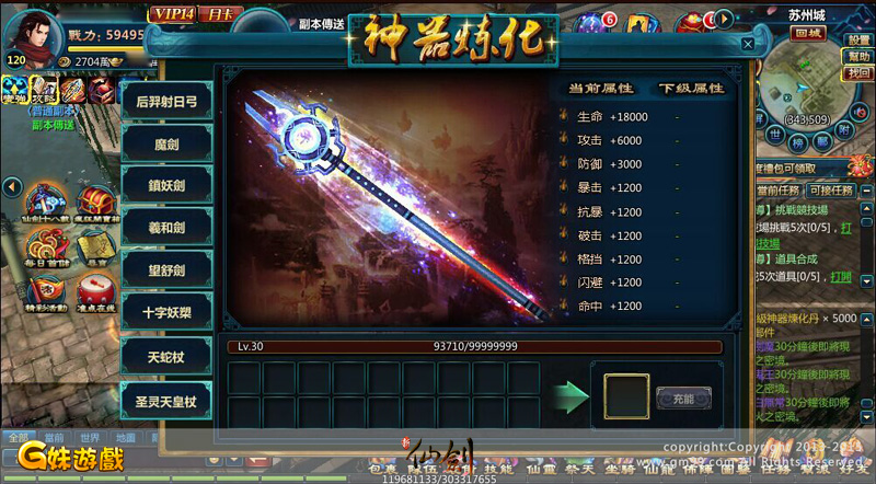 《新仙劍》聖靈天煌杖神器可透過煉化來提高屬性加成