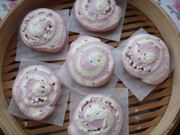 蒸鍋中裝水放上蒸籠大火蒸20分鐘