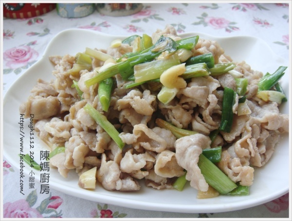 依序放入 五花肉片 蔥白 醬油 蔥段 鹽