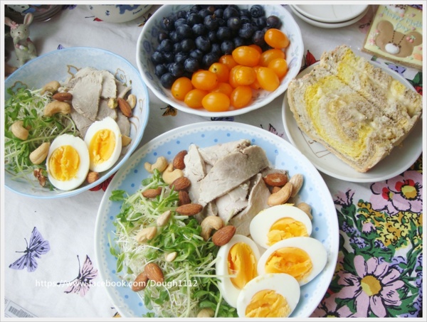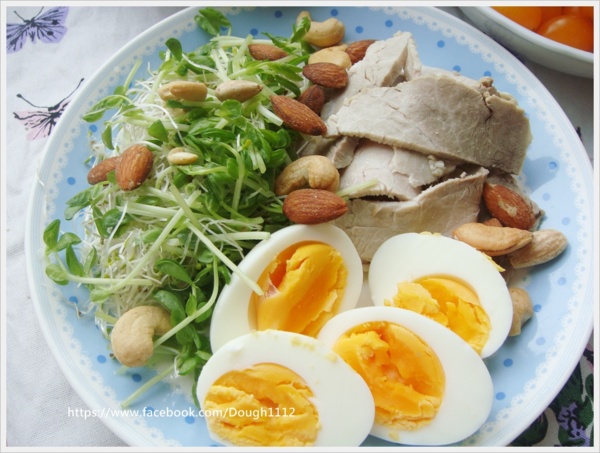 雙芽菜+堅果+水煮蛋+水煮肉...