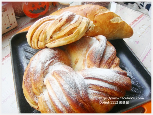捲成麻花狀 再繞成一個圈 像似甜甜圈