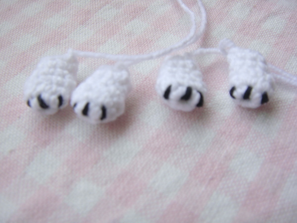 小腳丫 是我認為最困難的部分很難讓每隻腳丫 一樣大小難免有些微誤差 又加上我都隨手鉤沒有畫織圖...也沒有留下針數
