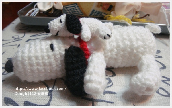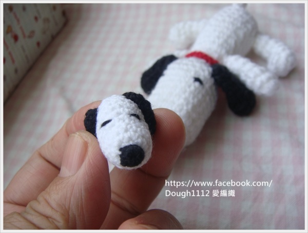 很愛史奴比在指間的小史 非常可愛白色的小史 織起來還算順手但是因為非常小 約4.5公分所以 非常需要耐心的
