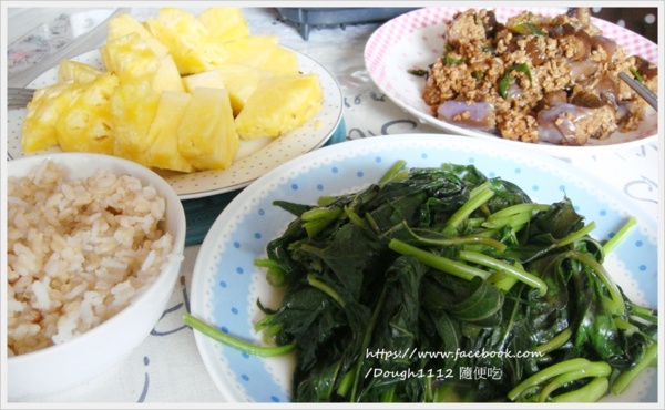 椒麻茄子 番薯葉 糙米飯 鳳梨