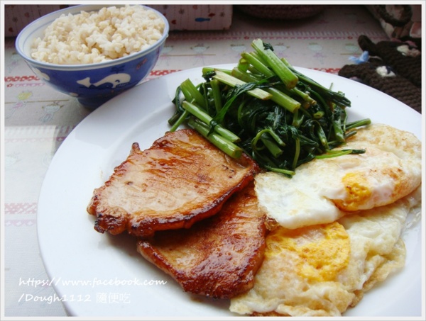 15分鐘 簡單吃 肉片 荷包蛋 空心菜 糙米飯