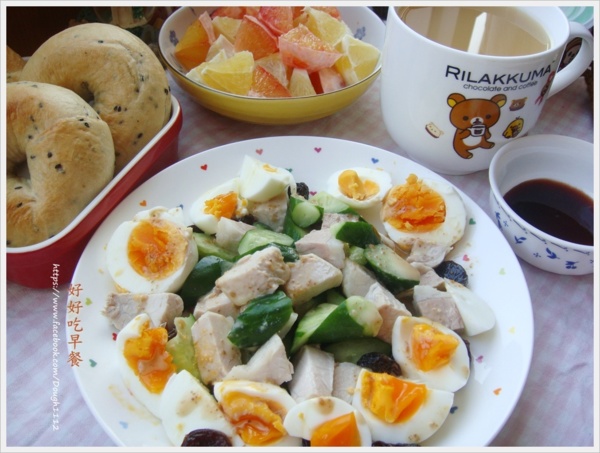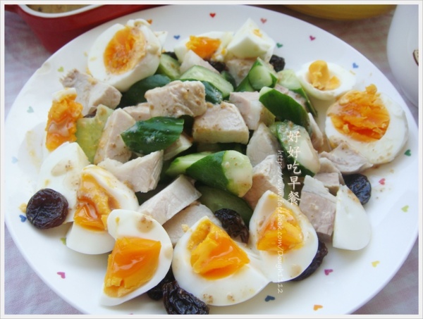 水煮雞蛋 豬肉丁 小黃瓜 葡萄乾