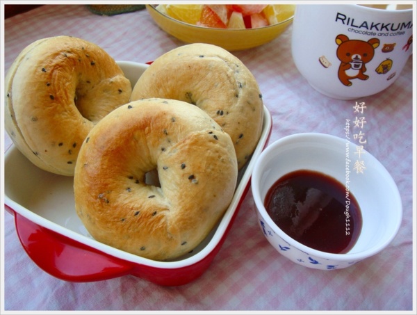 早餐麵包...黑芝麻貝果佐蜜李醬♥