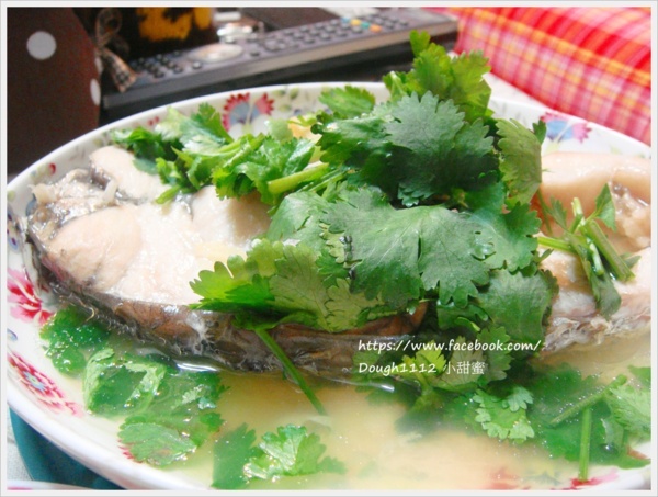 清蒸鯇魚..鯇魚+蒜末蒸熟 放上香菜