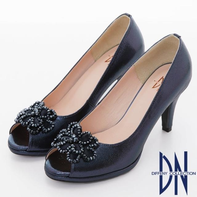 | 【DN】氣質名媛 水鑽花朵拼接金蔥魚口跟鞋(藍)![]()