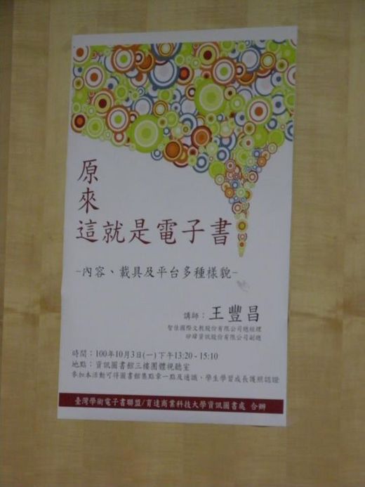 10/3 一早南下苗栗到育達大學圖書館演講數位出版。